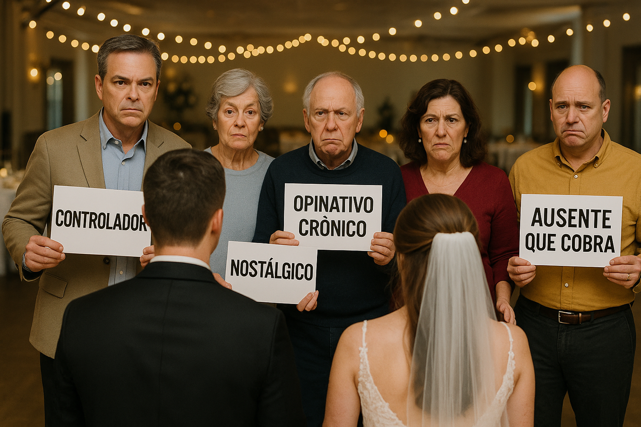 Sabe aquele tio que adora dar opinião em tudo? Ou aquela tia que faz questão de dizer como foi “no tempo dela”? Ou ainda aquele familiar que quer decidir o cardápio, a música e o lugar dos padrinhos?